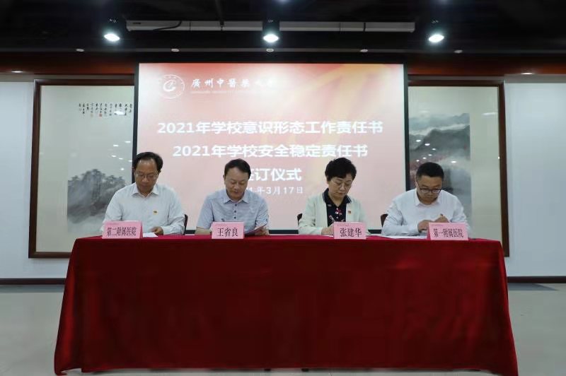 张建华通报近几年学校加强意识形态工作情况,肯定了成绩,也指出存在的问题和不足。会上还组织了2021年学校意识形态工作责任书、2021年学校安全稳定工作责任书的签订。