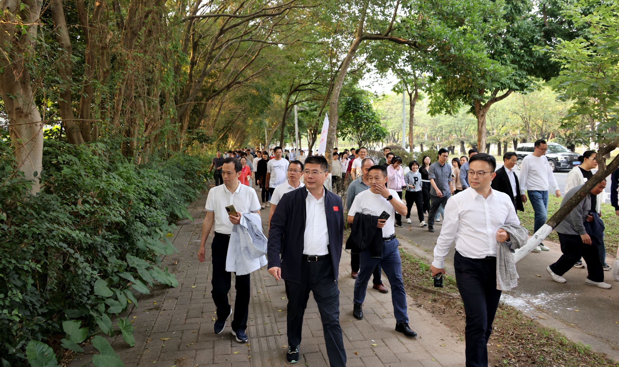 12月5日下午,2024年“冬季阳光校园行”在大学城、三元里校区同时启动。学校党委书记陈文锋宣布“2024年冬季阳光校园行活动现在开始”。党委常委、副校长、工会主席郭鸿参加。在各分工会的动员下,大学城校区500余名教职工、三元里校区近200名教职工,开始了环校健步走,现场气氛热烈、轻松、欢乐。