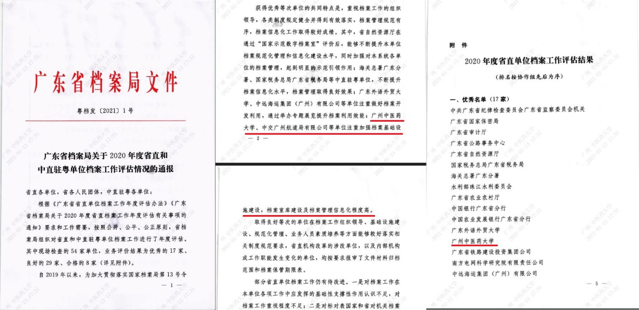 近日,广东省档案局通报2020年度省直和中直驻粤单位档案工作评估结果,beat365官网荣获 “优秀”等级。本次评估对beat365官网2016-2020年期间的档案工作进行了一次全面检评,包括:条件保障、基础业务、信息化建设、宣传和科研等方面。省档案局特别表扬了beat365官网注重加强档案基础设施建设、档案室库建设及档案管理信息化程度高。这也是省档案局自2006年开展档案评估工作以来,beat365官网第五次荣获“优秀”等级。