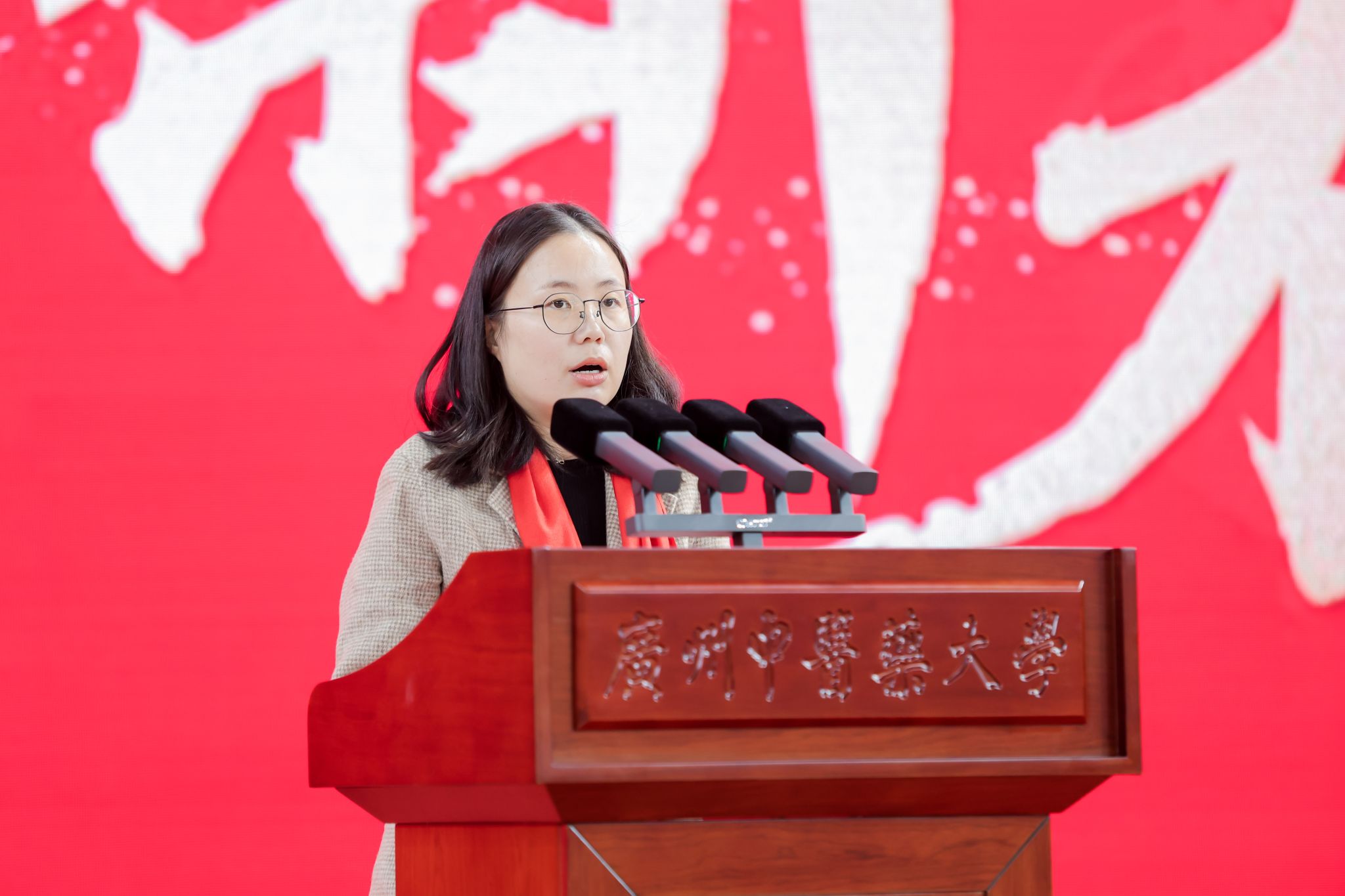 针灸康复临床医学院姚露露副研究员、澳门籍2023级中医学本科生黄圣洋同学发言。她们分享了过去一年奋勇拼搏的艰辛历程和工作、学习的成长进步,表达了在广中医朝夕不倦、在大湾区成就中医梦想的信心和决心,期待在新百年新征程为广中医的崭新未来、为祖国的繁荣富强贡献更多智慧和力量。