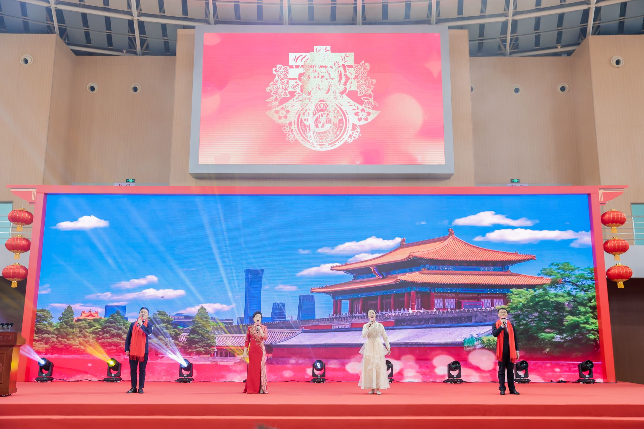 陈文锋、王宏斌等学校领导来到师生代表中间,同大家亲切握手,互致问候。最后,全场起立高唱《在希望的田野上》,现场洋溢着欢乐祥和的节日气氛。