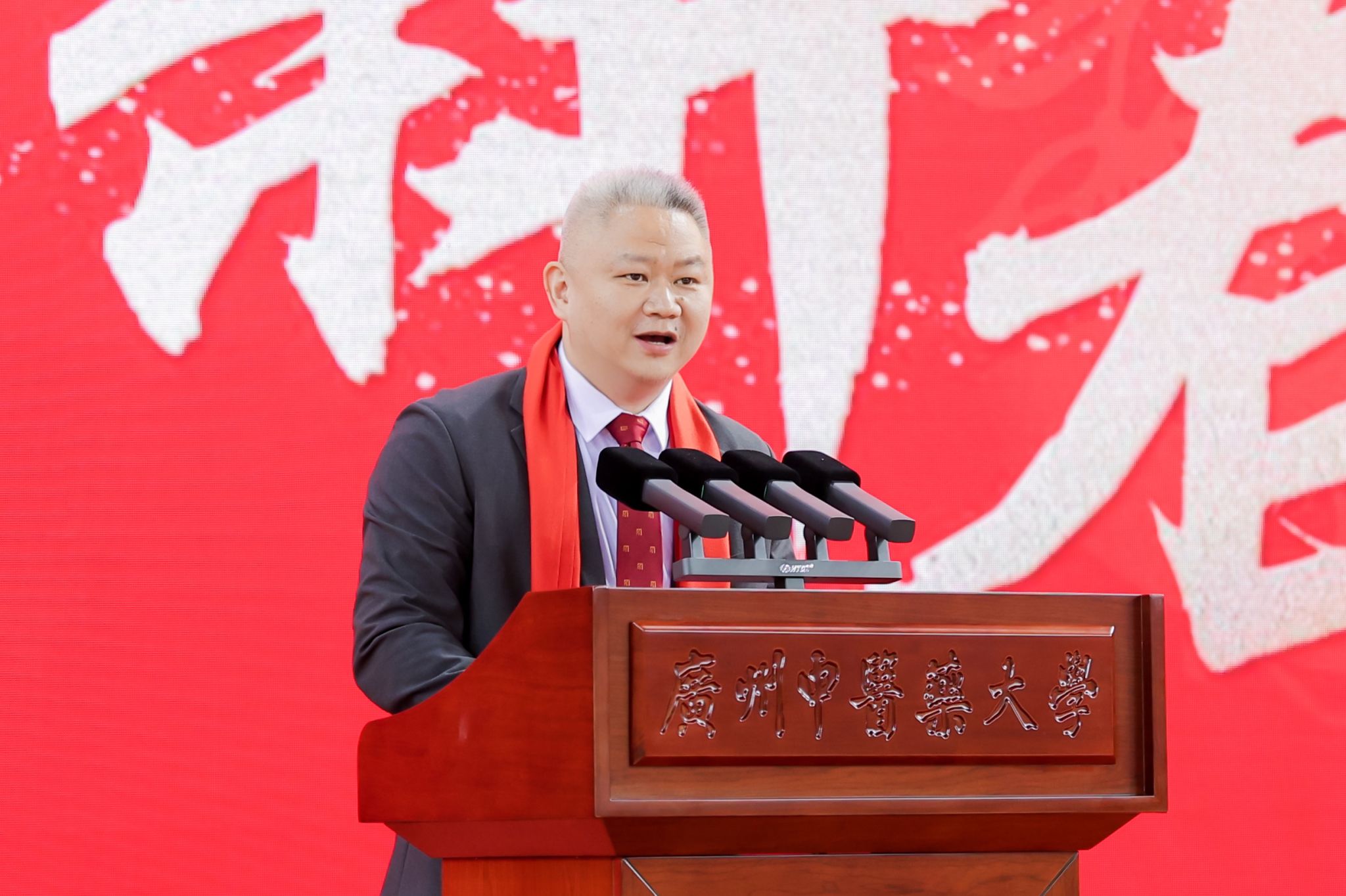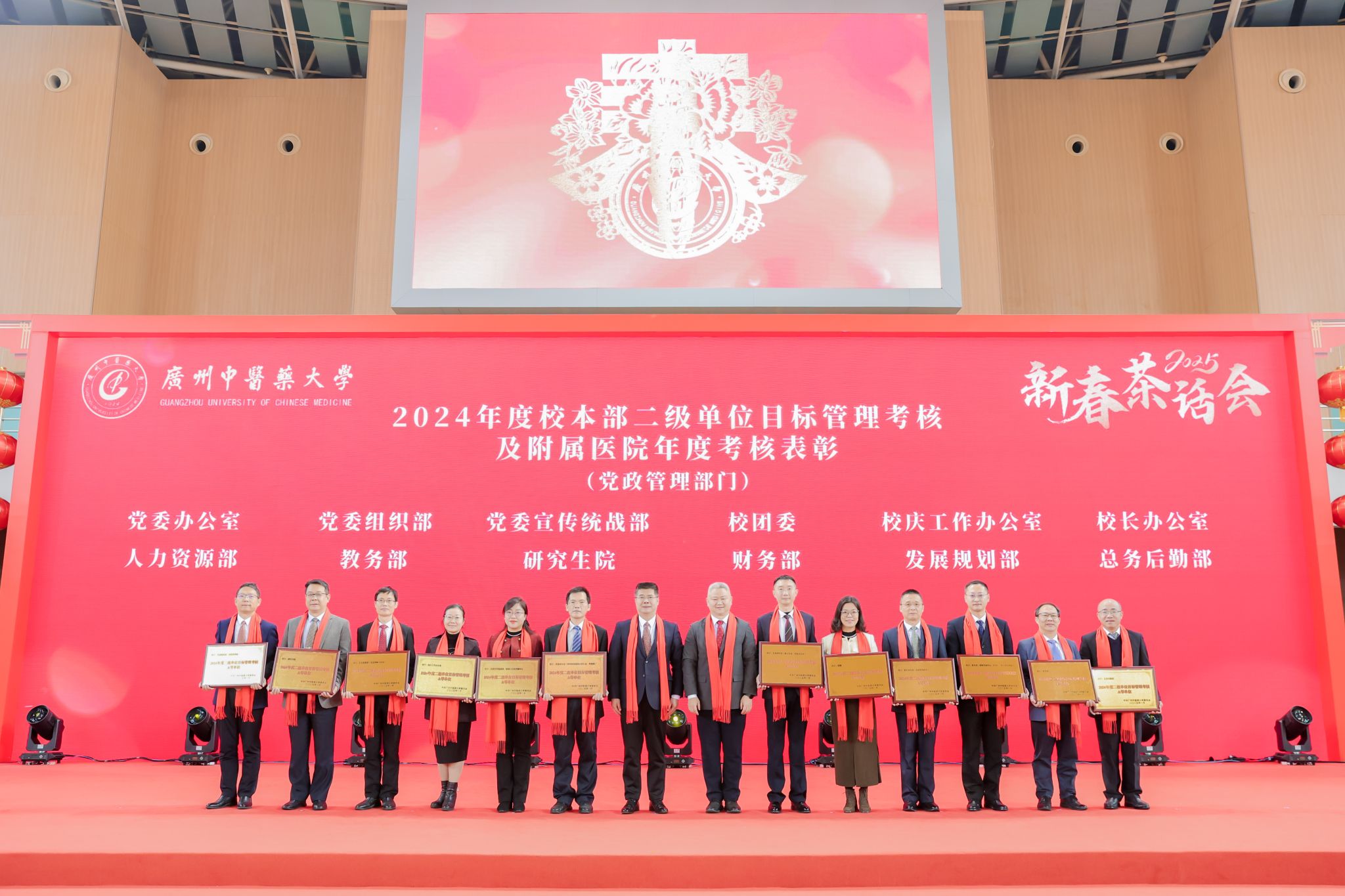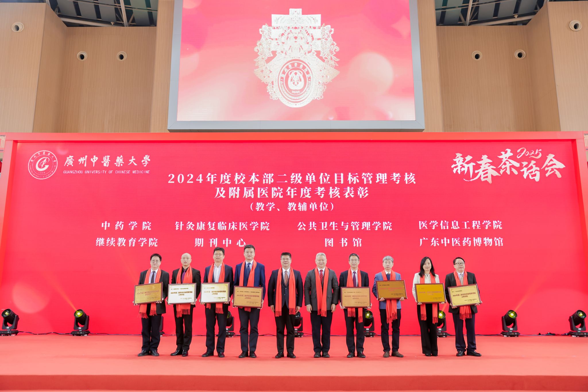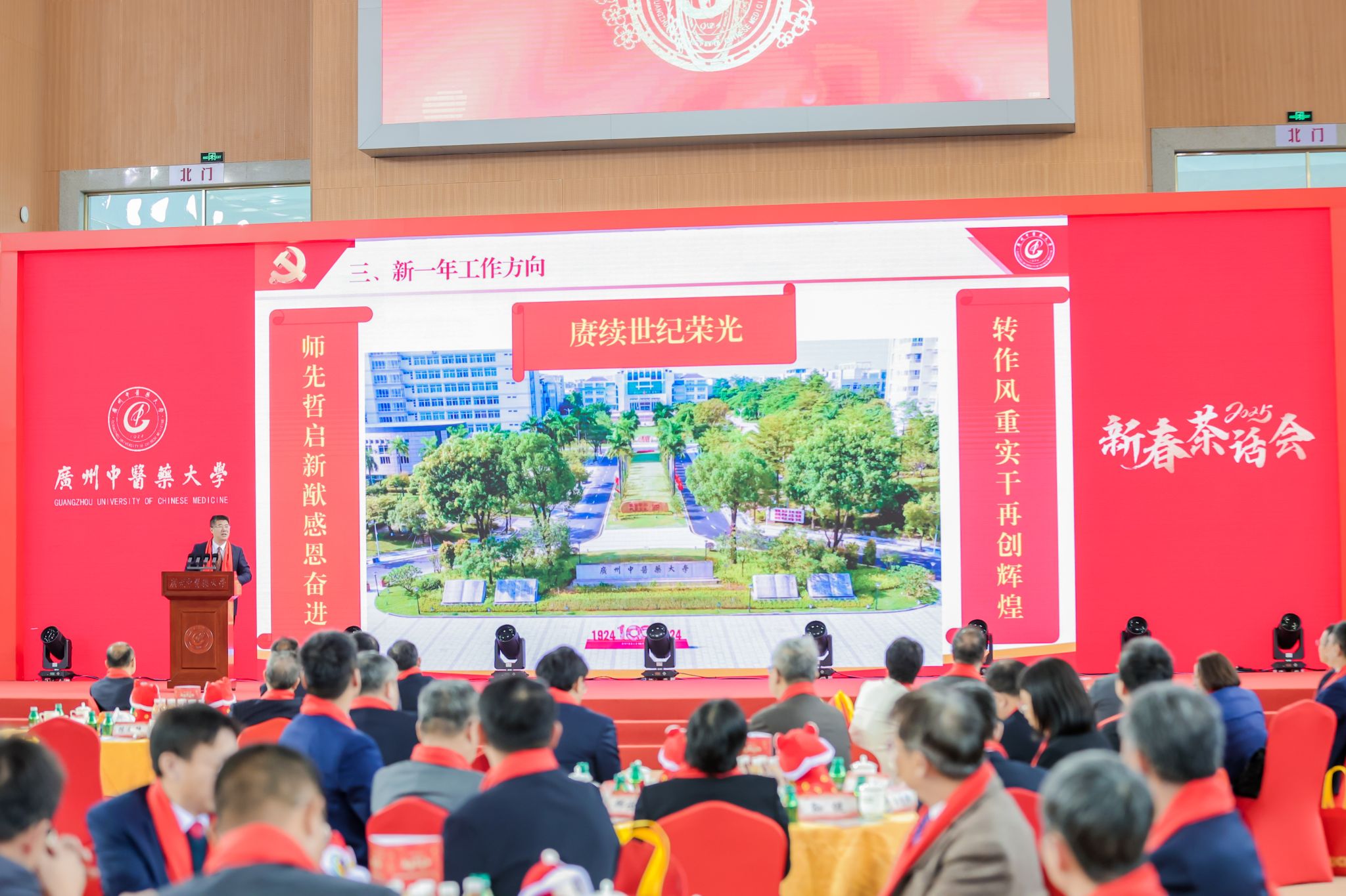 王宏斌强调,2024年习近平总书记来横琴视察粤澳共建中医药高端科技支撑平台,对beat365官网整合多学科先进技术,助力中医药走向世界的做法表示肯定;学校持续开展“转作风、重实干、开新局、争一流”解放思想再出发,以高质量党建引领学校事业高质量发展;成功举办“百年岐黄,逐梦一流”建校100周年系列活动,进一步凝聚人心、汇聚力量;持续深化教育教学改革,顺利通过新一轮本科教育审核评估;构建大思政格局,“一站式”学生社区投入运营使用;召开学科高质量大会,推动学科建设“筑峰造尖”,学科排名实现新突破;坚持外引内培深度协同,稳步推进人才集聚工程;树立“大广中医”理念,大力推动附属医院医疗服务提质增效;学校青蒿抗疟援外团队获“中国青年五四奖章集体”荣誉;提升内部治理效能,校园环境再上新台阶。他表示,新的一年行将开启,要聚精会神抓好高质量发展,在加快建设教育强国、健康中国的时代浪潮中乘风破浪,向着“再造一个新广中医”的宏伟目标奋勇前进!