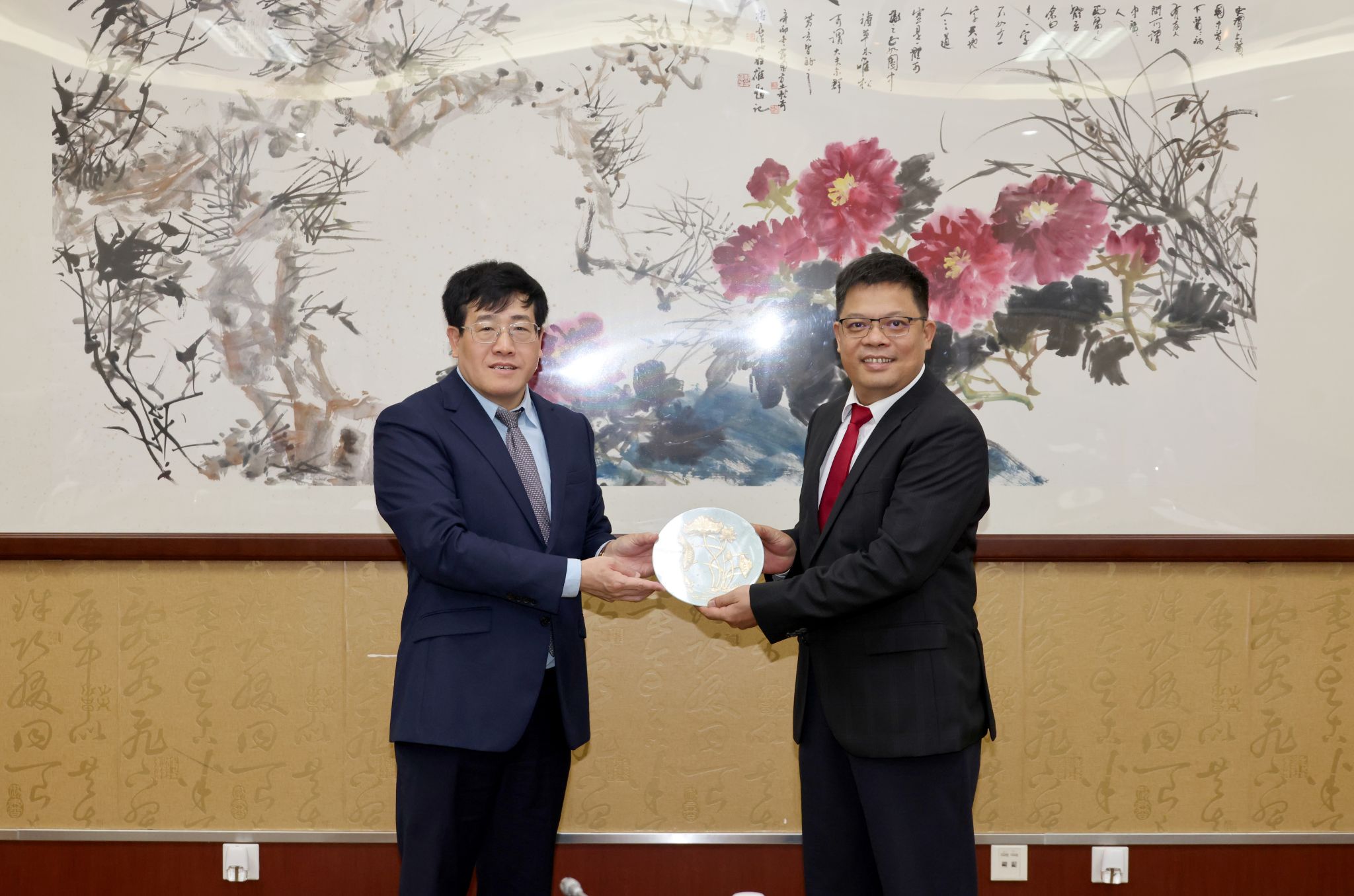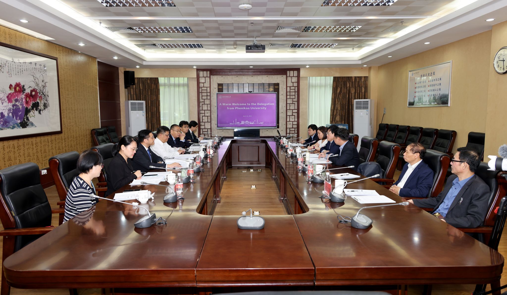4月18日上午,越南菲尼卡大学副校长武鸿升一行6人莅临beat365英国官网网站,就深化中医药领域合作事宜展开了深入的座谈交流与实地考察。beat365英国官网网站党委副书记邱亚洪接见来宾。