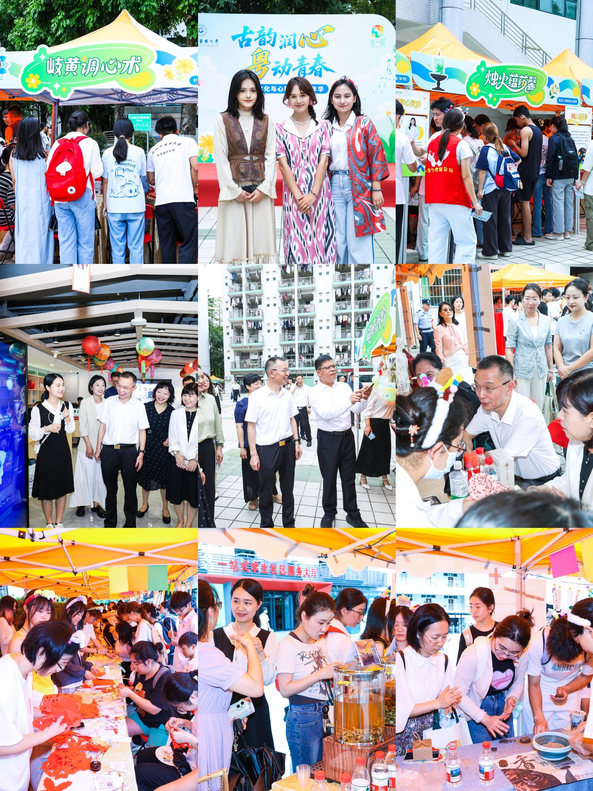 学校在一站式学生社区举办“古韵润心 粤动青春”传统文化与心理健康嘉年华,安排特色主题区4个,设活动摊位28个、学生风采展示23个。本次嘉年华活动将中国传统文化、中医药特色与学生心理健康深度融合,引导学生体验传统文化与中医药魅力,树立心理健康意识,增强文化自信,现场吸引了1000余名师生参与体验。