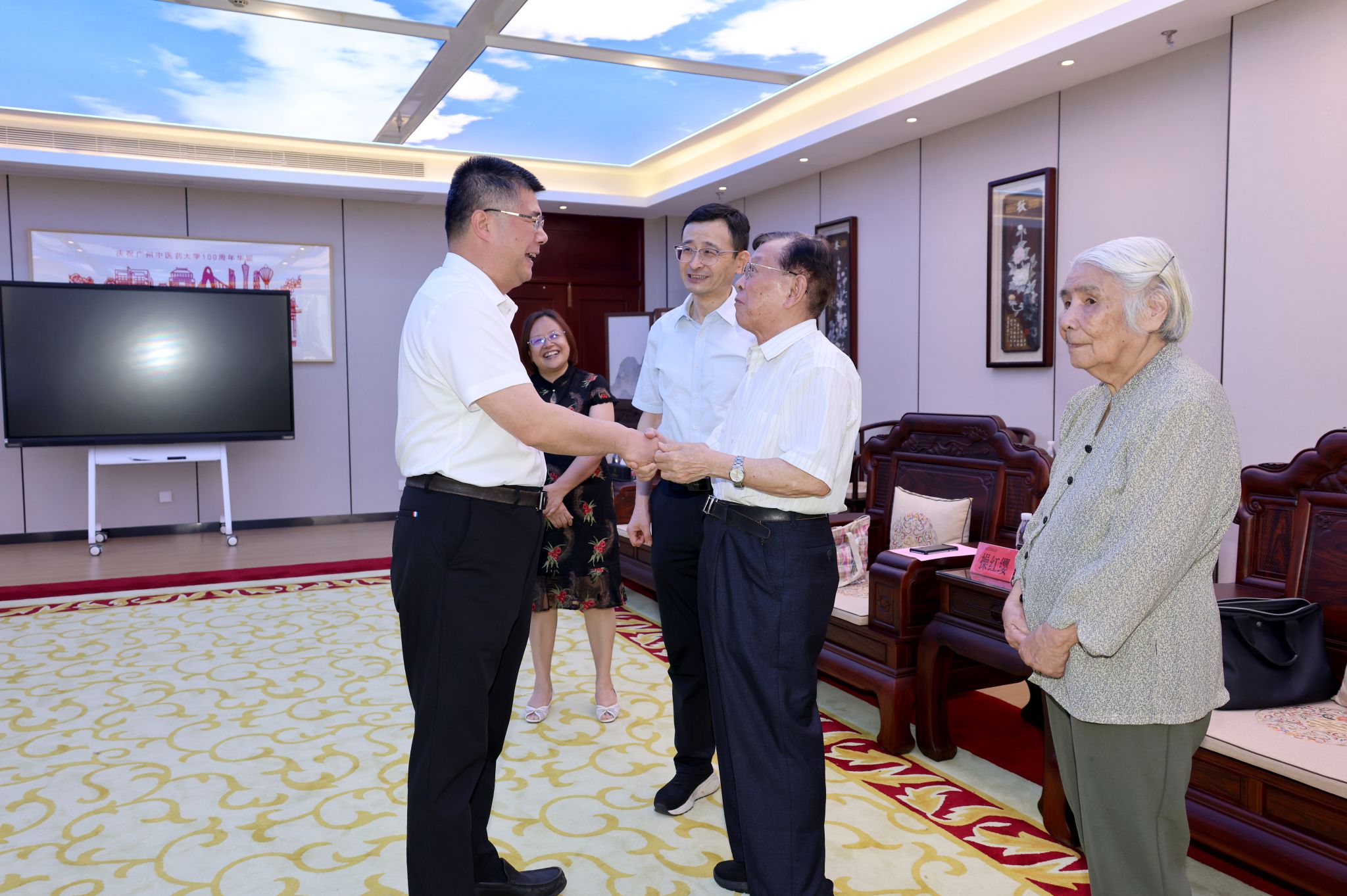 5月27日下午,学校党委书记陈文锋会见优秀校友梁颂名教授及夫人陈淑英一行。