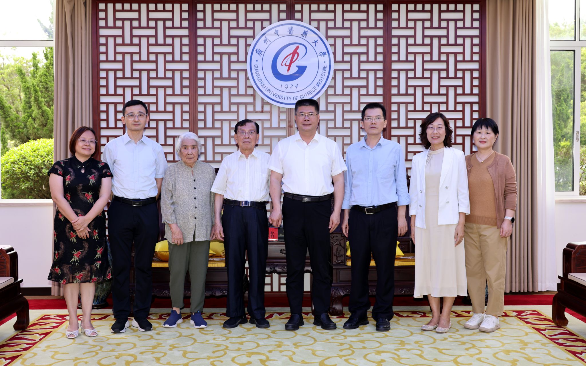 陈文锋对梁颂名教授及夫人陈淑英一行重返母校表示热烈欢迎。他回顾了学校世纪华诞的盛况,介绍了近年来学校“双一流”和高水平大学建设取得的显著成绩,尤其是学校在港澳中医药人才培养、推动粤港澳三地中医药领域合作方面所做的努力和成效。他指出,梁老虽已届九十高龄,仍坚持在教学一线和临床门诊辛勤耕耘,为粤港澳大湾区中医药人才培养事业倾注毕生心血,这份对教育事业的执着坚守和对母校的赤子情怀令人由衷敬佩。他深情祝愿梁老及夫人身体健康,期待两位能继续发光发热,为推动中医药事业的传承创新与繁荣发展作出新的更大贡献。