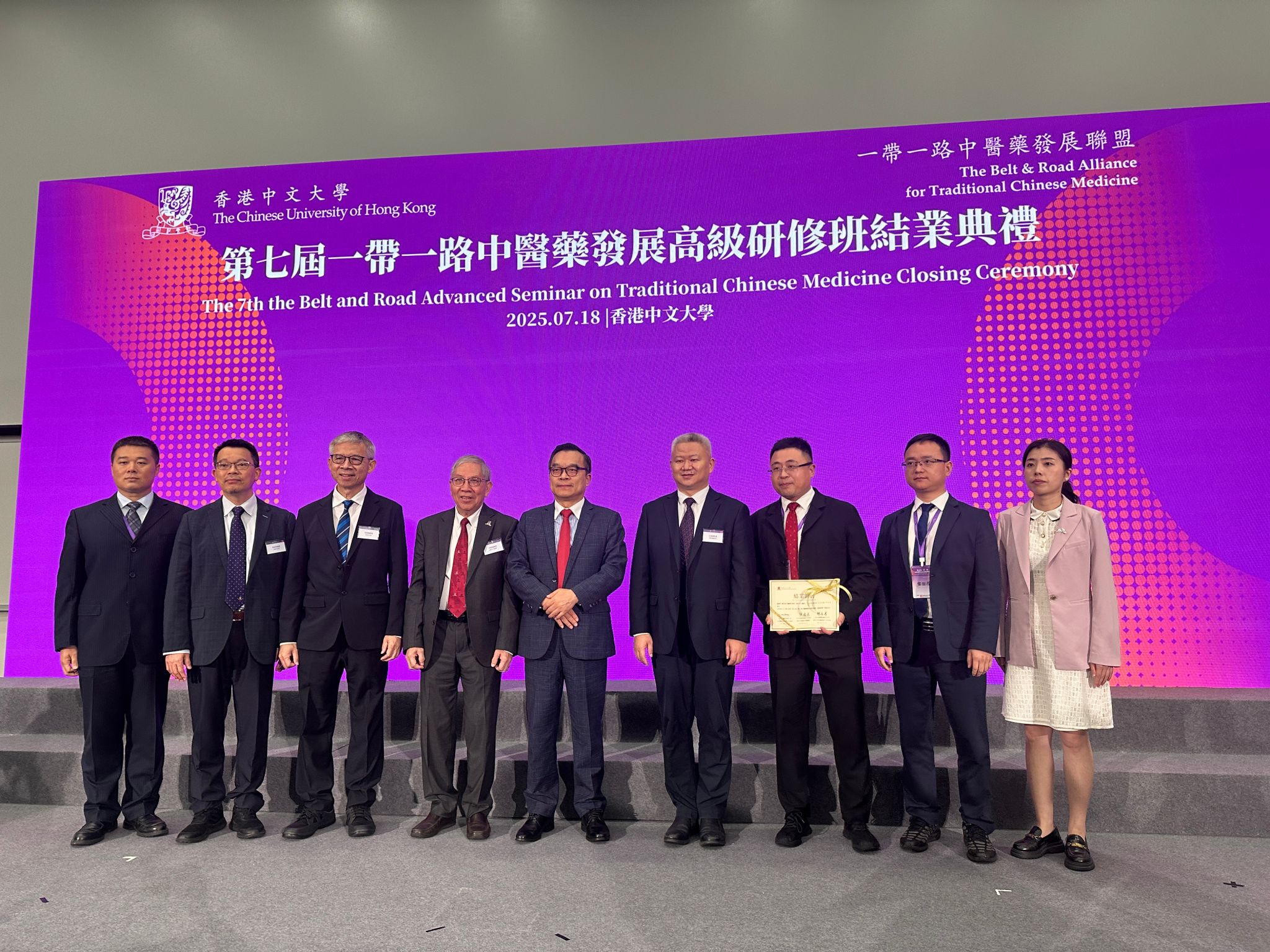 论坛结束后,王宏斌与beat365官网参会学子合影,并出席“第七届一带一路中医药发展高级研修班结业典礼”,见证beat365官网学员领取结业证书。