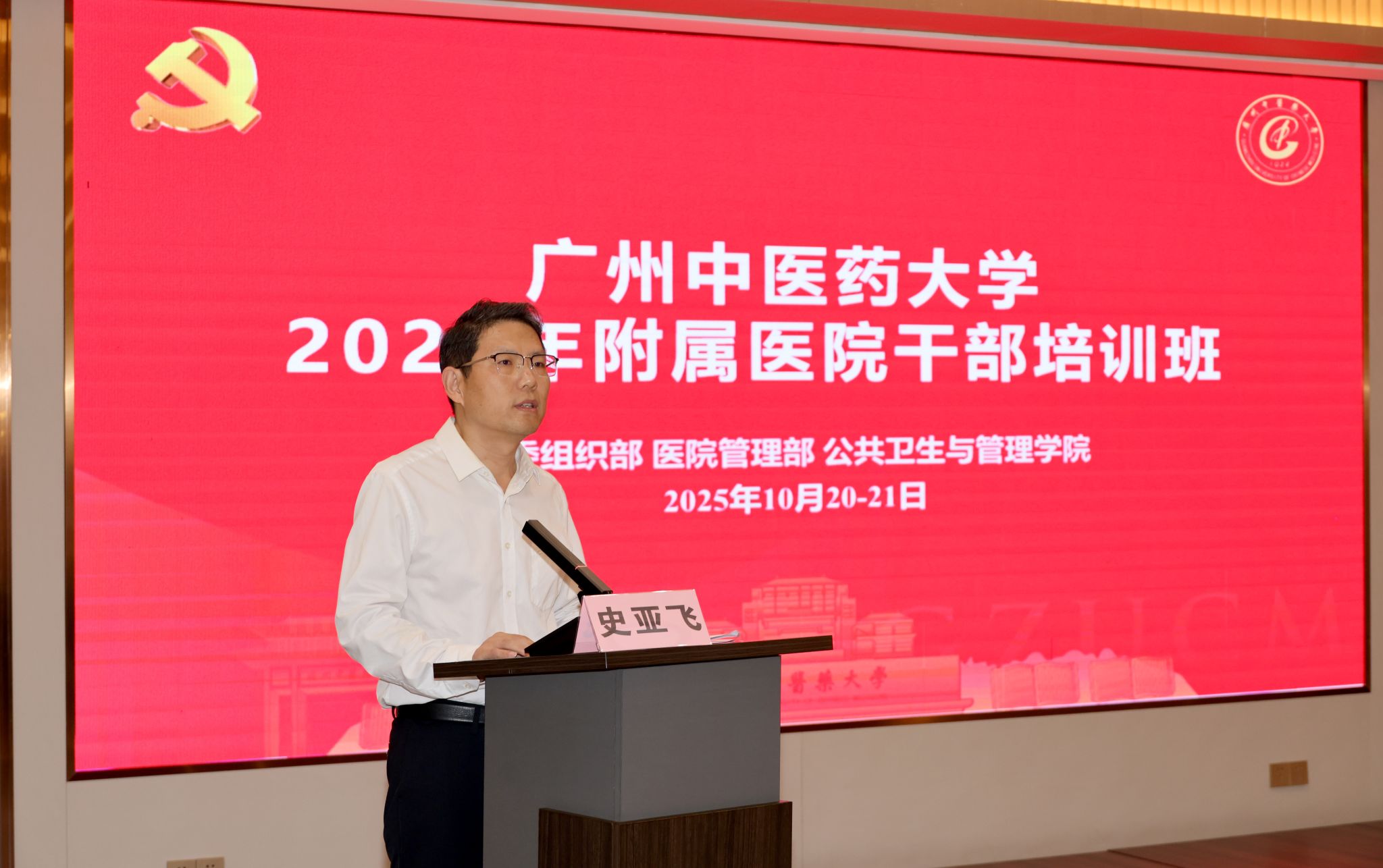 10月20-21日,beat365英国官网网站2025年附属医院干部培训班在清远佛冈举行。培训班由中共beat365英国官网网站委员会主办,党委组织部、发展规划部(医院管理部)、公共卫生与管理学院以及广东省中医药学会中医医院管理专业委员会、吕玉波教授工作室联合承办,来自22个单位的学员参加培训。beat365英国官网网站党委书记陈文锋出席开班式并讲话,党委常委、副校长杨荣源参加结班仪式并总结。党委常委、副校长史亚飞主持开班式。