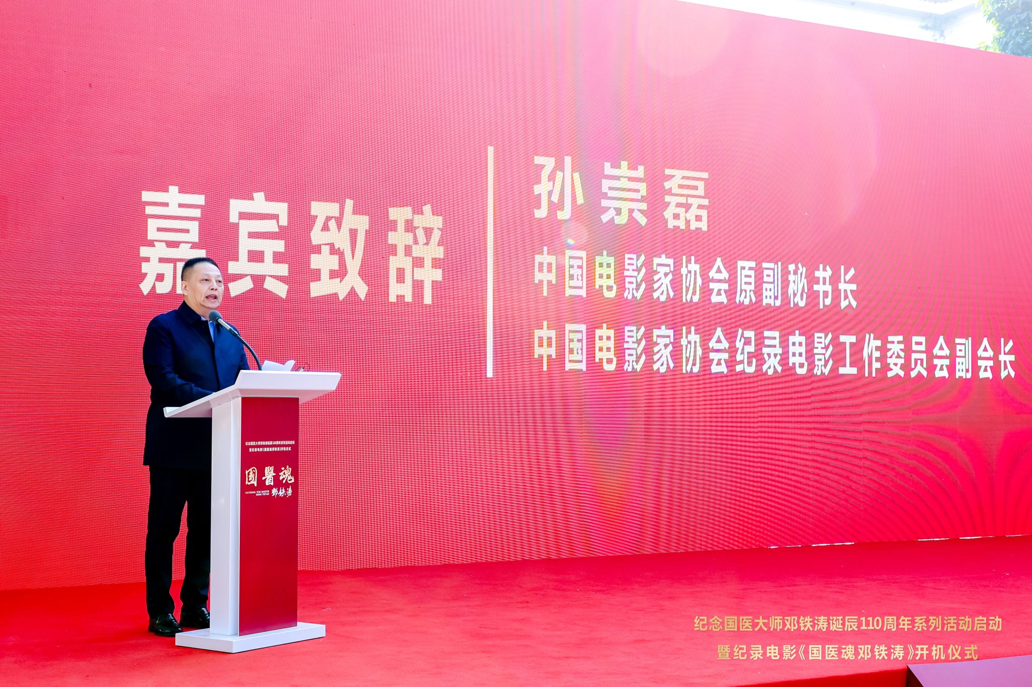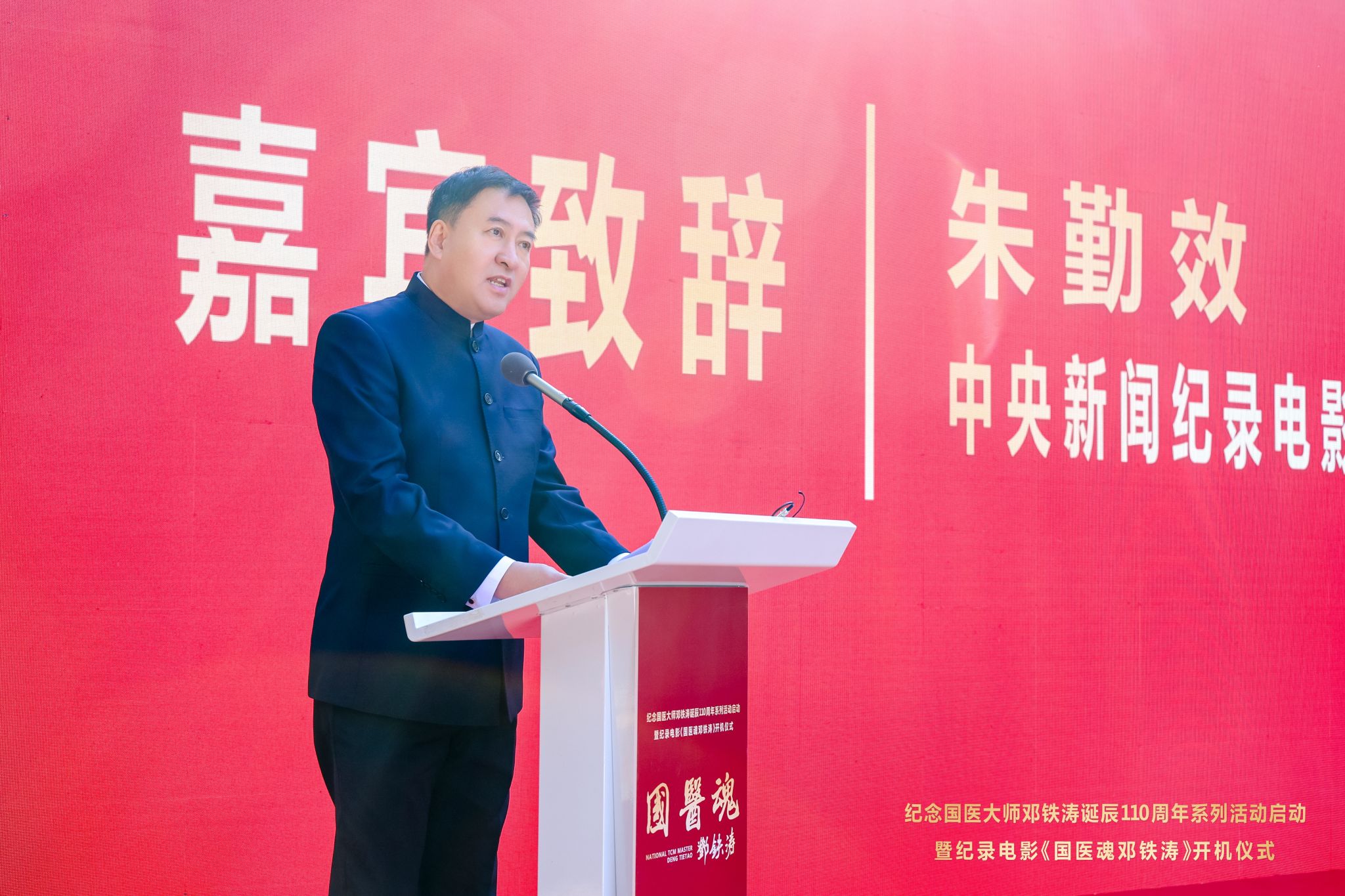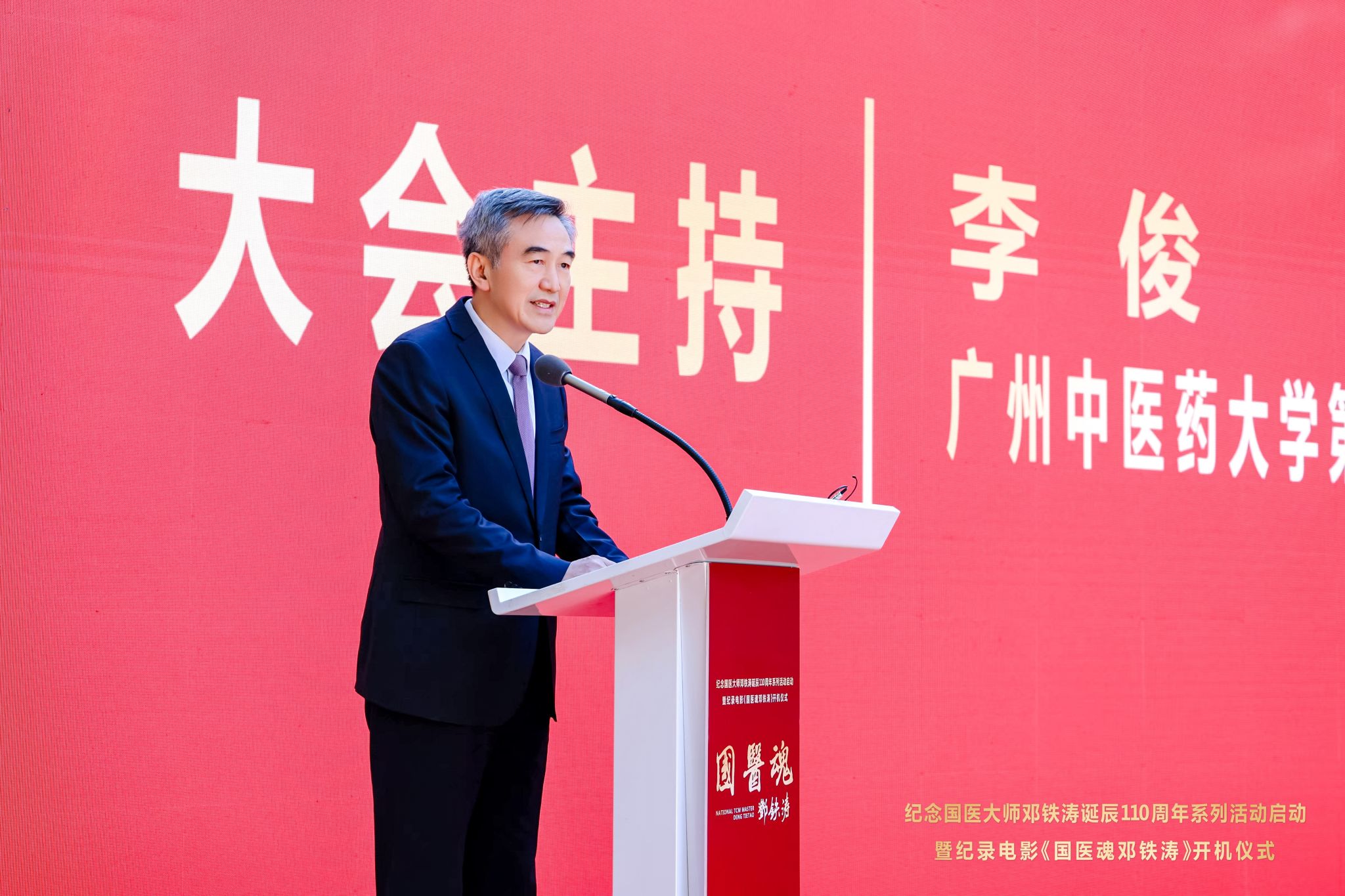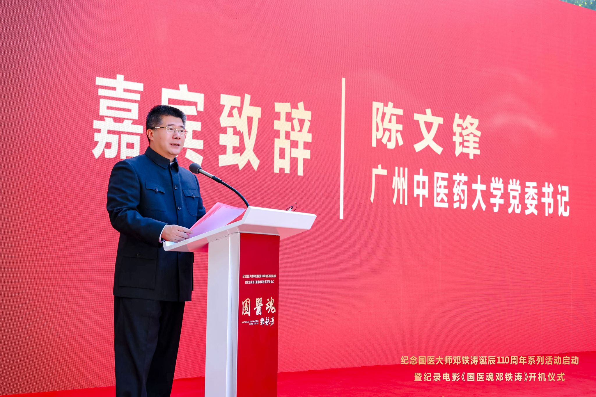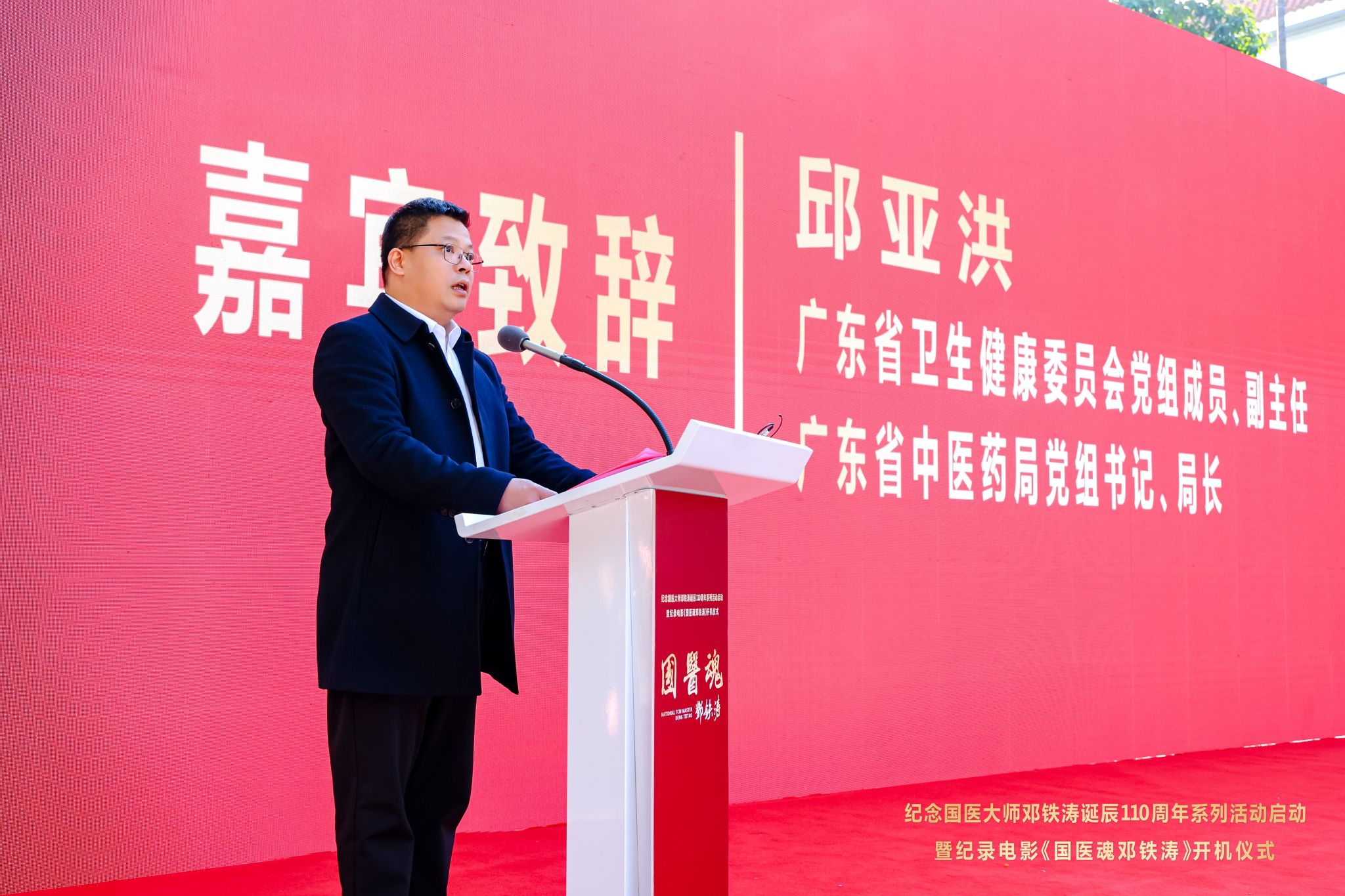 邱亚洪在致辞中表示,《国医魂邓铁涛》是“十五五”广东重要文化宣传的开篇力作。他指出,影片将作为抢救性记录工程,艺术化再现中医药发展与岭南地区的一段重要历史,将充分发挥价值引领作用,激励广大中医药工作者特别是青年一代感悟大师风范,增强文化自信,勇担传承创新职责。影片还将作为展示广东形象、贡献广东智慧的重要窗口,系统提升公众对中医药的了解度、认同感和获得感,凝练广东中医药文化品牌,进一步向全国乃至世界讲好广东中医药故事,生动展示广东推进中医药传承创新发展的积极探索与丰硕成果。