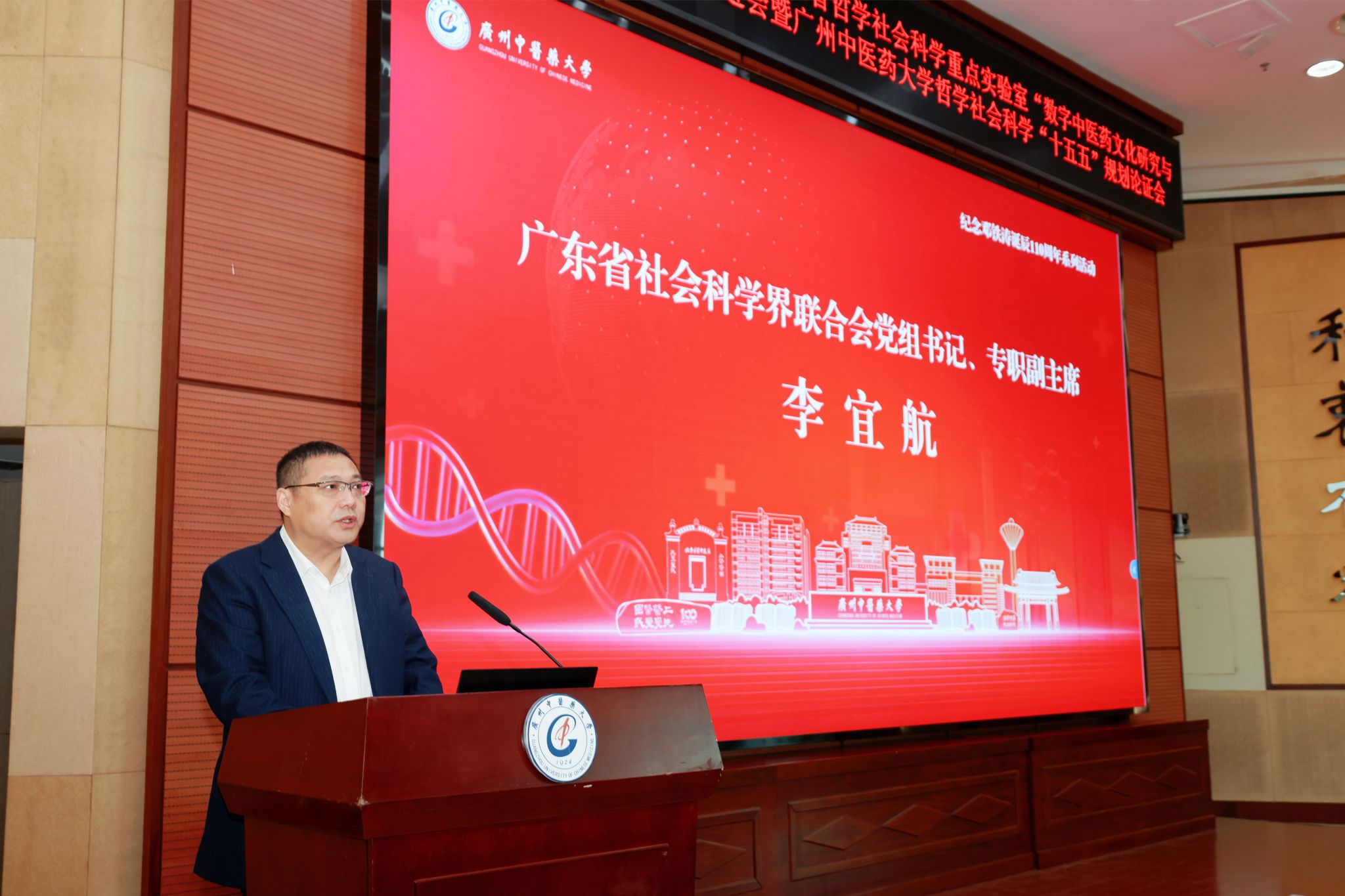 陈文锋向与会领导专家表示欢迎感谢。他表示,传承创新中医药文化、繁荣哲学社会科学是中医药高校的时代使命。2026年是“十五五”开局之年,学校正以“未来五年定百年”的使命感,系统谋划“再造一个新广中医”的“三步走”发展蓝图。他回顾了学校与省社科联的战略合作成果,要求高站位谋划规划、高标准建设实验室,并以纪念国医大师邓铁涛诞辰110周年为契机弘扬“铁涛精神”,推动哲学社会科学事业发展。