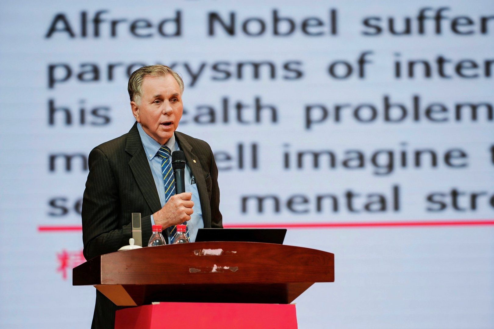 马歇尔教授以“颠覆式创新-诺奖诞生历程及合作机遇”为题,结合自身发现幽门螺杆菌的科研历程,生动讲述了科学探索中的坚持与勇气。他鼓励师生带着好奇心和创新精神投身科研事业,为人类健康贡献力量。