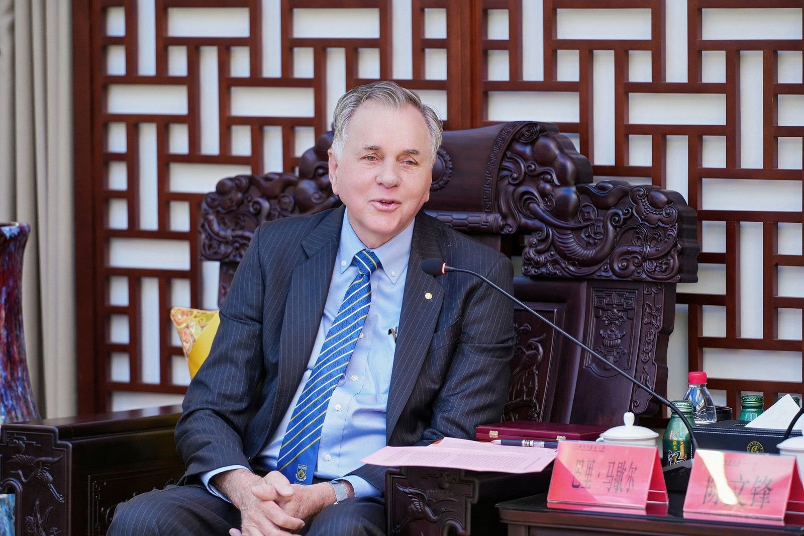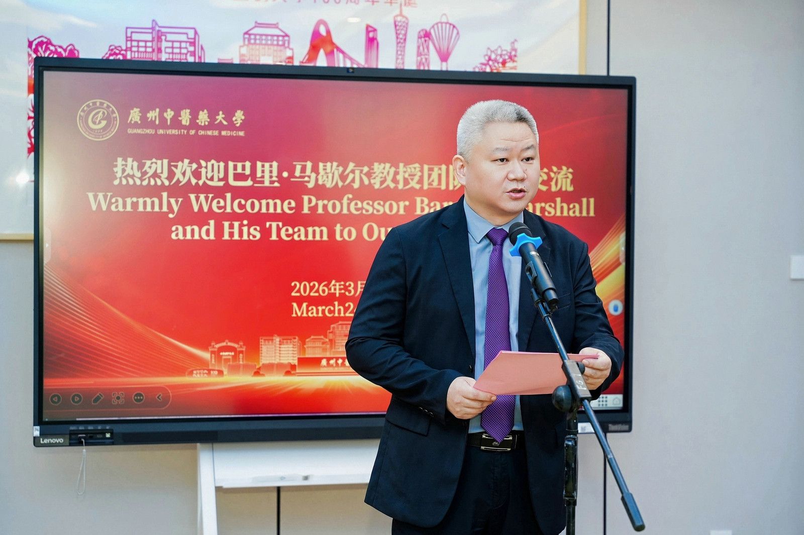校长王宏斌主持座谈会。他对马歇尔教授一行的到访表示热烈欢迎,并介绍了学校的基本情况与发展成就。他指出,学校始终秉持“厚德博学、精诚济世”的校训,致力于中医药传承与创新,期待双方在科研合作、平台共建、人才培养等方面建立长效合作机制。