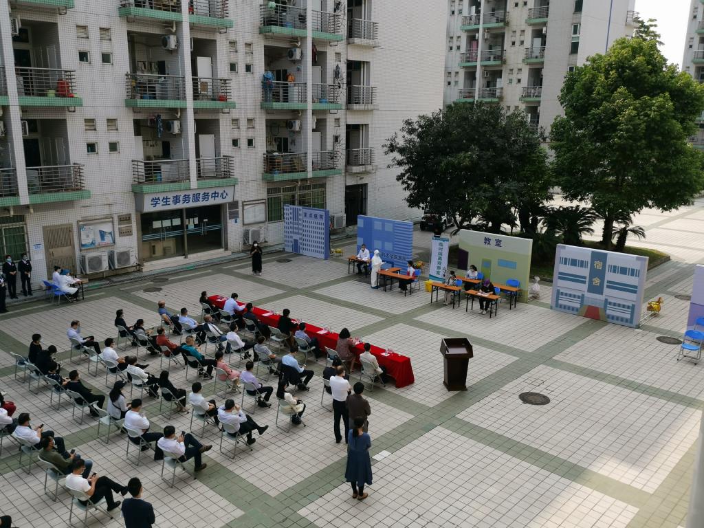 4月16日下午,beat365官网在大学城校区举行新型冠状病毒肺炎疫情应急处置演练。学校党委书记张建华出席演练并作点评,副校长潘华峰担任总指挥,在校全体校领导及有关职能部门负责人参加。本次演练旨在落实省教育厅关于全力防控疫情确保安全开学的工作部署,进一步提高学校应对新冠肺炎疫情的应急处置能力,加强校内各防控部门之间的协调和配合,全面提升学校防控新冠肺炎疫情的能力。