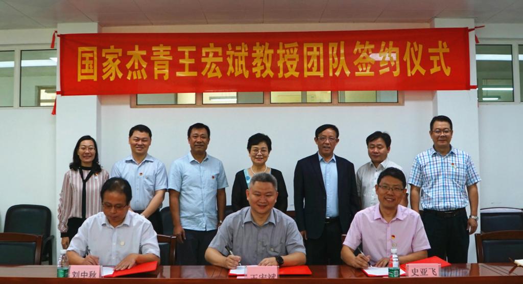 11月5日上午,首个国家杰青王宏斌教授团队签约仪式在中药学院A419会议室举行,这是beat365官网在高层次领军人才引进工作一大新突破,学校党委书记张建华出席并见证了签约仪式。副校长许能贵,党办、人事处、科技处、教务处、研究生院、中药学院等部门负责人以及“中药资源与生物技术”研究团队全体成员参加。