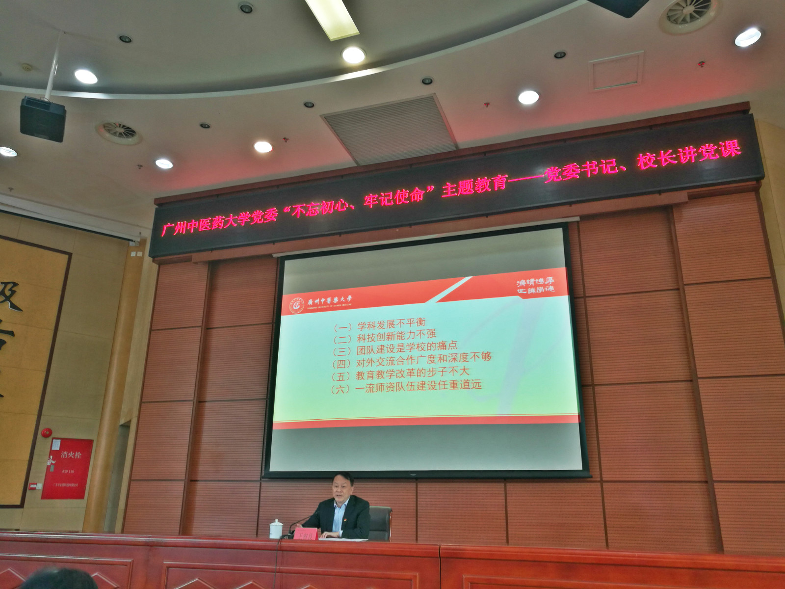 王省良上题为《“不忘初心,牢记使命”,为建设一流中医学科和高水平中医药大学而奋斗》党课并传达习近平总书记对中医药工作的重要指示和李克强总理对中医药工作的重要批示。围绕上课主题,他从“双一流”建设的任务、beat365官网的建设成效、存在的问题、改进的措施四个方面作了详细讲解。他解读了学校的“初心”和“使命”:即高等中医药教育发展的初心,传承发展中医药事业的初心;培养高素质人才的使命以及服务大健康产业的使命。他分析了学校学科建设、科技创新、教育教学、医院建设、师资队伍建设五个方面的建设成效,同时指出了学校存在学科发展不平衡、科技创新能力不强、团队建设不足、对外交流合作广度深度不够、教育教学改革的步子不大、一流师资队伍建设任重道远等突出问题。