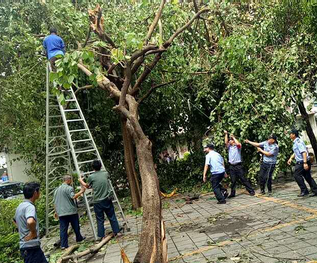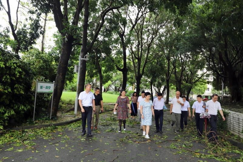 17日一早,学校党委书记张建华组织有关管理部门、物业公司巡视台风过后的校园,并为灾后校园恢复正常秩序作了工作部署。