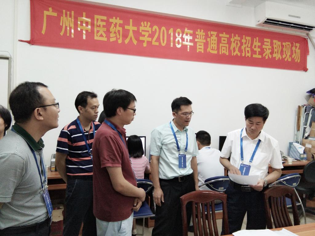 7月15日,广东省普通本科文理类优先投档线上投档,beat365官网一次满档并顺利完成录取计划。今年beat365官网文理科投档线分别为552分和514分,理科超出优先投档线14分,文科超出优先投档线2分,中医学(五年制)等5个专业录取最低排位均有超过2000位的提升。学校党委副书记翟理祥、副校长梁沛华到录取现场调研指导学校招生录取工作。