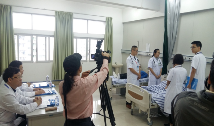 竞赛项目为临床教师教学查房,各非直属附属医院积极响应,踊跃报名,共有22家单位的37支队伍参赛。竞赛分为预赛和决赛两个阶段。预赛由各医院自行组织,以提交教学查房视频的形式,推选教师参赛作品参加学校选拔。决赛由学校教务处统一组织,采用标准化病人模拟临床常见病例的方式进行教学查房,由第一、二临床医学院的临床教学资深专家担任评委。