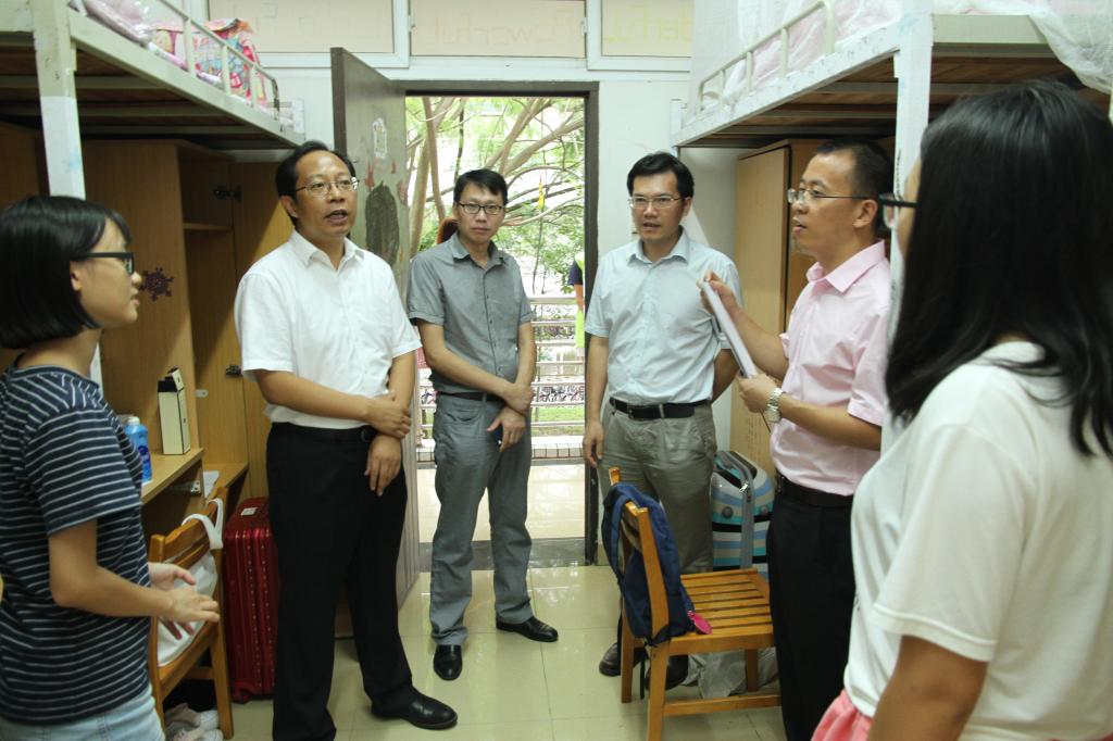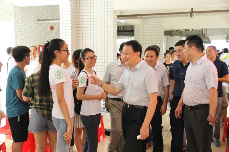 校长王省良、党委副书记翟理祥到迎新现场看望新生,走访学生宿舍,与学生和学生家长亲切交谈,叮嘱新生注意事项,勉励他们要尽快完成从高中到大学生活的转变,尽快融入大学生活。他们对参与迎新的师生表示慰问,感谢工作人员的辛勤付出,希望大家尽心尽力为新生及家长提供更加周到、贴心的服务。