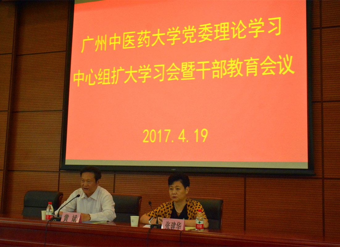 4月19日,学校党委理论学习中心组在大学城校区召开扩大学习会,学习贯彻习近平总书记对广东工作所作的重要批示精神。党委书记黄斌主持会议,学校党委理论学习中心组成员,校本部科级及以上干部,重点学科带头人等200余人参加学习。