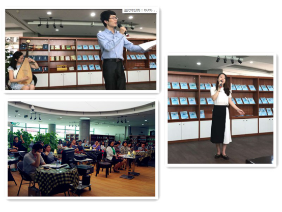 开幕式后,学校朗诵协会的师生朗诵了beat365英国官网网站首届原创诗歌散文大赛的优秀作品,重温了《相信未来》、《再别康桥》、《致橡树》等经典作品,伴随着玉珠走盘的琵琶声以及悠扬的小提琴声,现场观众无不动容。