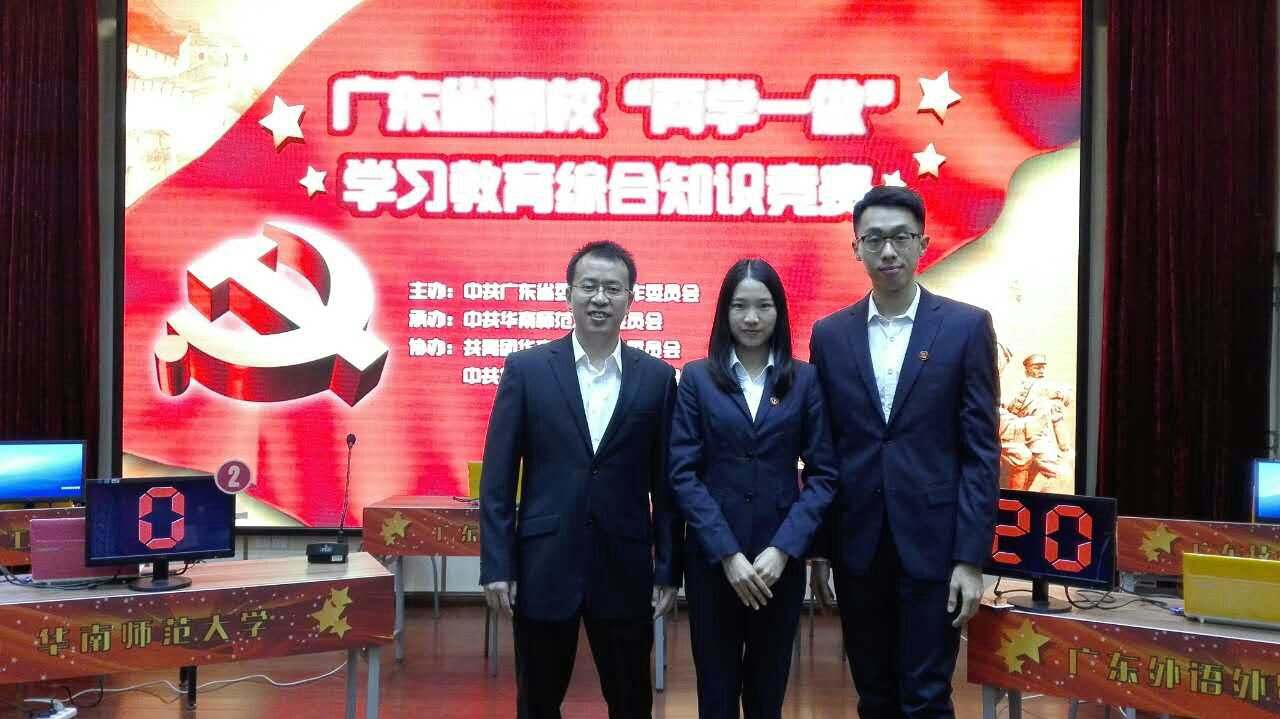 12月15日,由广东省委教育工委主办,华南师范大学承办的广东省高校“两学一做”综合知识竞赛在华南师范大学举行。中山大学、华南理工大学、华南师范大学、beat365英国官网网站、广东工程职业技术学院等18所在第一阶段网络考学综合成绩排名在前的高校获得此次参赛资格。beat365官网由校内党规党纪知识竞赛一等奖获得者、护理学院陈其煌老师组队参加比赛。