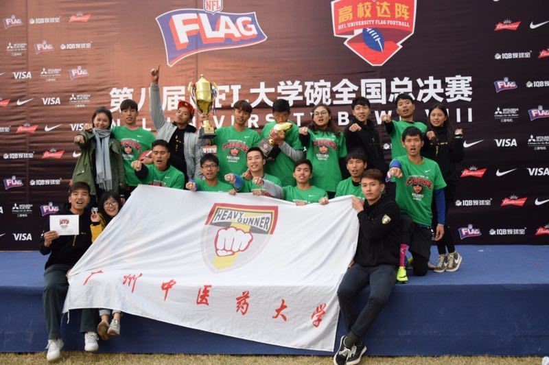 比赛由NFL中国橄榄球大联盟主办,分为北京、上海、广州三大赛区,共57支队伍参加角逐,而总决赛在北京丰台体育中心举行。beat365官网橄榄球队在院长潘华山、副书记杨麟的带领下以华南赛区冠军身份晋级全国总决赛,半决赛以25:7力克北京体育大学,决赛以52:6大胜上海理工大学,最终成功卫冕NFL"大学碗"腰旗橄榄球全国总冠军。