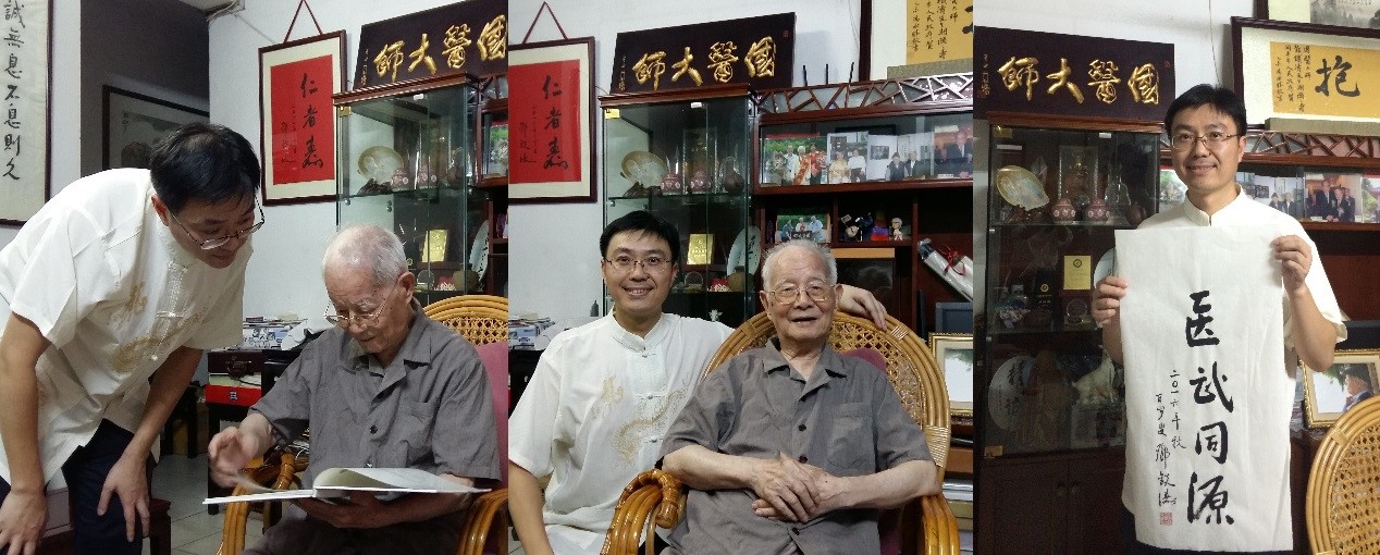 邓老指出,21世纪是中医学的世纪,目前中医学的基础理论与技术实践已经越来越走向世界,被国际学术界所逐步理解、接受,我们要对中医学有信心,要继承并发扬好中医学。传统武术,特别是内家拳、健身气功等,均是中医学体系中行之有效的养生保健方法,是医武同源的高度体现,是中华文化的精髓。邓老嘱托张进博士,一定要在beat365官网把传统武术继承下去并发扬光大。张进博士向邓老介绍了自己在美国访学期间参与塔夫茨大学补充与替代医学中心的太极拳临床研究,中心主任王岑岑教授主持的太极拳治疗Fibromyalgia临床研究成果发表在《新英格兰医学杂志》上,是目前补充与替代医学领域最高水平的标志性文章。邓老听闻后分外高兴并亲自手书“医武同源”墨宝赠予张进博士作为勉励。