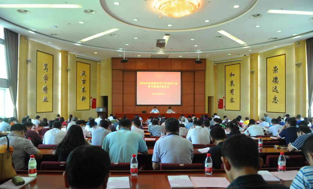9月13日,beat365官网在大学城校区召开2016年纪律教育学习月动员大会,党委副书记、纪委书记张建华主持会议,党委书记黄斌作动员报告。全体在家校领导,校本部副处级以上干部,各直属附属医院纪委书记、副书记、专职纪检监察干部,校本部科级干部及辅导员代表共200余人参加会议。