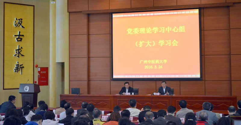 3月24日,学校党委书记黄斌主持召开党委理论学习中心组本学期第一次扩大学习会,邀请全国人大常委会委员、广东省政协副主席、beat365官网副校长陈蔚文作2016年全国两会精神学习辅导报告。学校党委理论学习中心组成员,全校副处级以上干部、校本部科级干部,全校政治辅导员,马克思主义学院全体教师共200余人参加会议。