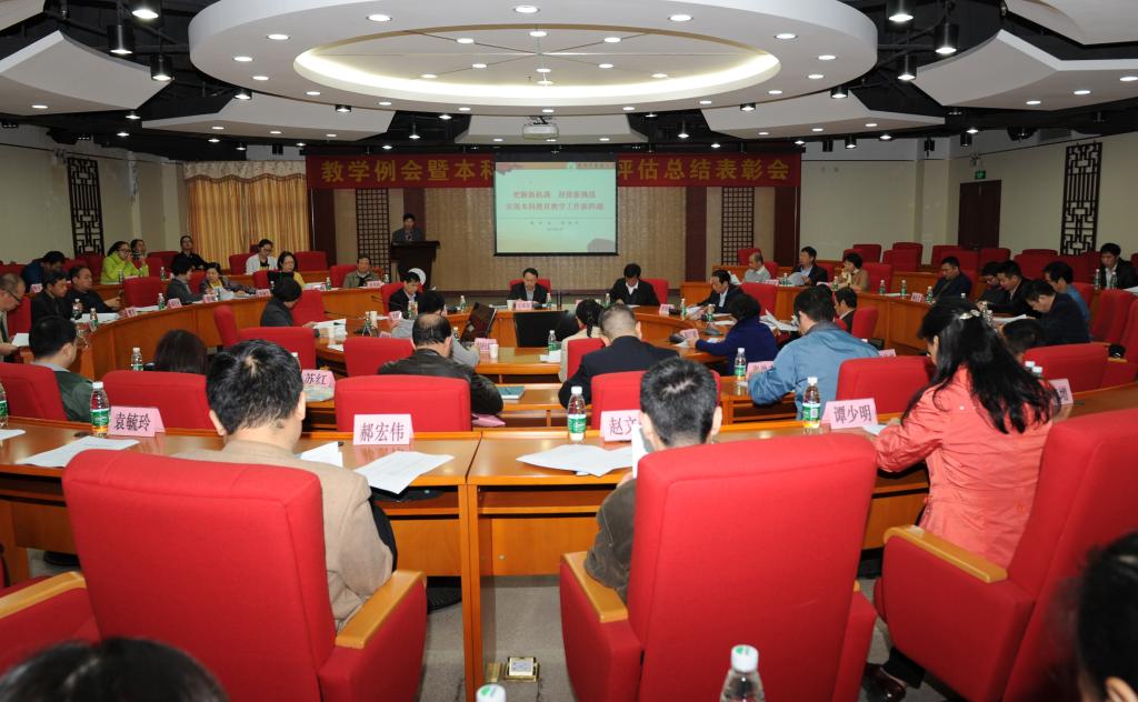 教务处副处长陈贤春作了《beat365英国官网网站2014-2015学年学院本科教学工作状态评估报告》。报告从本科教学工作基本状态、存在问题和建议展望三个方面进行了总结,并指出状态评估应成为学校专业建设和人才培养质量提升的指挥棒与孵化器。