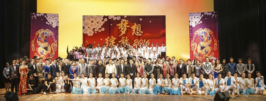 12月30日晚,“梦想·绽放2016”beat365英国官网网站迎新春文艺晚会在大学城校区大会堂举行。学校领导黄斌、王省良、陈英华、张建华以及部分职能部门负责人、各学院学生工作负责人,与全校2000余名师生一同观看了晚会,喜迎新年的到来。
