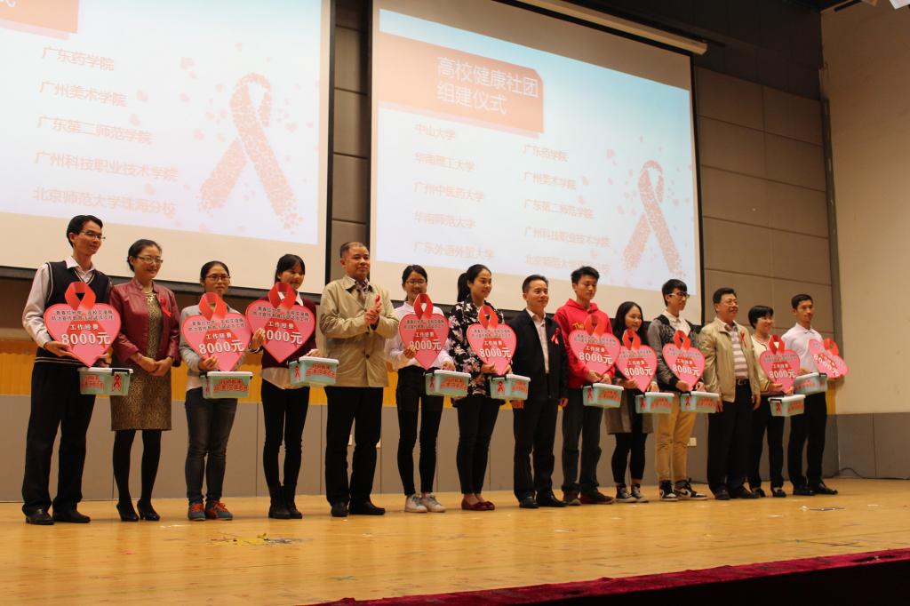活动中,主办单位领导向包括beat365官网在内的全省10所高校的“青春红丝带”高校健康社团代表颁发了社团组建经费及健康包,鼓励与支持更多的高校健康社团及大学生参与到防艾工作中来。