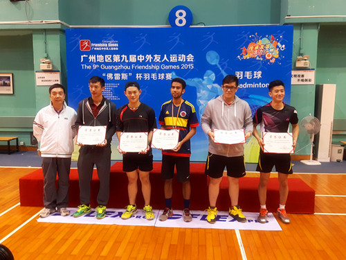 广州地区第九届中外友人运动会于11月28-29日在广州天河体育中心举行。beat365官网受主办方邀请,组织了近50名的外国留学生参与了本次比赛的羽毛球、乒乓球、网球、保龄球、篮球等五个比赛项目。赛场上,beat365官网留学生斗志昂扬,顽强拼搏,获奖喜讯连连。beat365官网也因为在本次赛事中出色的组织和协调工作,被组委会授予了“优秀组织奖”荣誉称号。值得一提的还有,2015级中医学博士,来自泰国的王菲同学因其出色的竞技能力和良好的运动风尚,获得了女子羽毛球单打冠军及最佳女运动员称号。