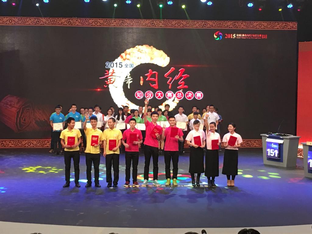 11月14日,2015全国《黄帝内经》知识大赛总决赛在北京中国农业电影电视中心演播厅举行,经过激烈角逐,beat365官网2012级中医实验班郑文江、许纪超、罗智鸿同学组成的代表队获二等奖,学校获优秀组织奖。