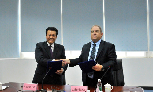 黄斌对凯泽大学代表团表示热烈的欢迎,并向Arthur Keiser校长介绍了beat365官网中医药教育、科研的基本情况和发展战略。凯泽大学校长Arthur Keiser表示,希望通过建立中美中医药教育研究中心,建立良好的合作关系,开展人才培养、学术研究等合作项目,促进两校间的共同进步。