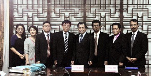 10月16日印尼苏迪曼将军大学校长AchmadIqbal博士一行四人来beat365官网访问并签署两校合作谅解备忘录。许能贵副校长与来宾进行了会面。国际交流合作处的相关同志陪同会见。