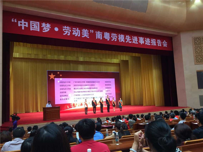 5月29日上午,由省委宣传部、省总工会联合主办的"中国梦·劳动美"南粤劳模先进事迹首场报告会在广州举行。一附院肿瘤中心主任林丽珠教授作为6名劳模之一作现场报告,向观众们深情讲述如何构建和谐医患关系。