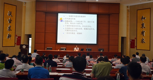 会议结束后,省委党校林子英教授为参会同志作了题为《践行"三严三实",推进作风建设》辅导报告。林教授深刻阐述了加强作风建设的重要性,从用"干净"的作风来做事、用"实干"的精神来做事等几个方面深入讲解如何践行"三严三实",推进作风建设。林教授的辅导报告主题鲜明、内容丰富、重点突出,针对性强,对beat365官网开展"三严三实"专题教育具有重要的指导作用。