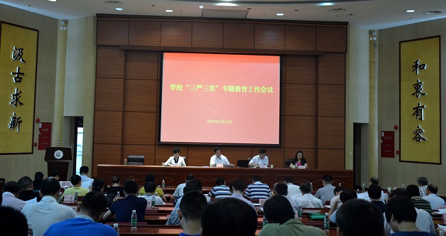 5月21日下午,学校党委召开"三严三实"专题教育工作会议,学习贯彻中央、省委"三严三实"专题教育工作会议精神,对beat365官网在处级以上领导干部中开展"三严三实"专题教育工作进行动员和部署。学校党政领导、副处级以上干部,校本部机关副科级以上干部,全体政治辅导员,校本部教工党支部书记约200人参加了会议。党委副书记陈英华主持会议。