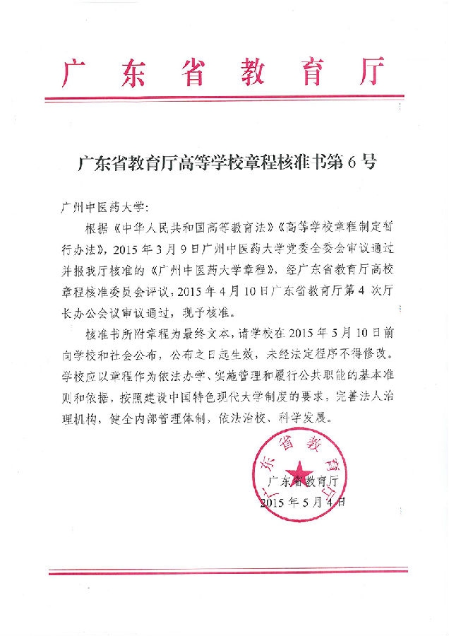 根据《广东省教育厅高等学校章程核准书第6号》,《beat365英国官网网站章程》已经广东省教育厅核准,现予公布。