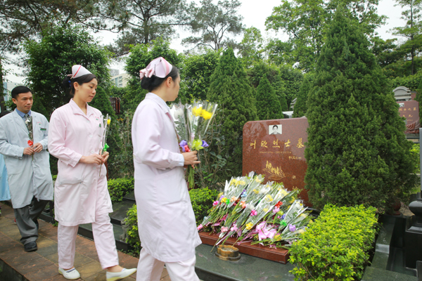 3月25日,是"抗非"烈士叶欣的第12个年头,为弘扬叶欣精神,beat365官网二附院将这一天确立为"叶欣纪念日"。当天一早,二附院的医务人员、第二临床医学院的学生100多人和叶欣烈士家属来到银河革命烈士公墓深切缅怀抗非英雄叶欣护士长,向叶欣烈士墓敬献鲜花,深情缅怀英烈。护士们在烈士墓前重温《南丁格尔誓言》,宣誓传承叶欣精神。