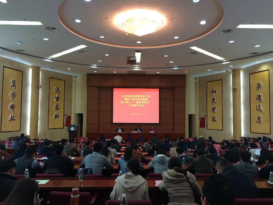 校党委副书记陈英华代表学校党委作beat365官网2014年度干部选拔任用工作情况报告,他从学习领会精神、认真制定方案、公开透明步骤、严格履行程序、严查干部信息、改进民主推荐方式、坚持党管干部与民主集中、加强干部选任监督工作等八个方面向与会同志进行了说明。与会同志对学校选人用人工作情况和新选拔任用干部进行了民主评议。