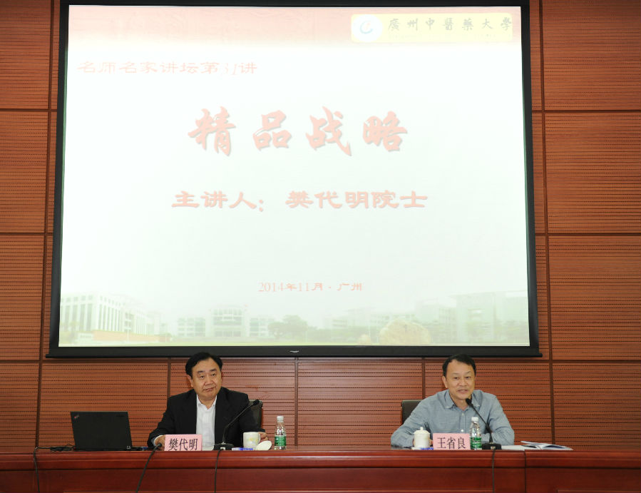 11月26日下午,学校大学城校区办公楼学术报告厅座无虚席,中国工程院副院长樊代明院士应邀做题为《精品战略》的讲座。王省良校长主持讲座,学校中层以上干部、校本部科级干部、学生校长助理共260余人聆听了讲座。