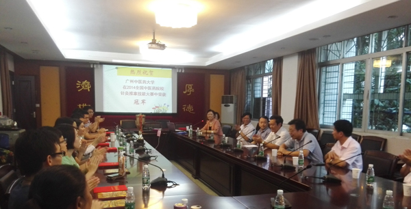 近日,校领导黄斌、王省良、陈英华、许能贵在三元里校区召开会议,表彰beat365官网在全国中医药院校2014皇甫谧杯针灸推拿临床技能竞赛获奖的全体师生。教务处和针灸康复临床医学院领导和专家组教师代表、工作组教师代表和参赛的师生参加了表彰会。
