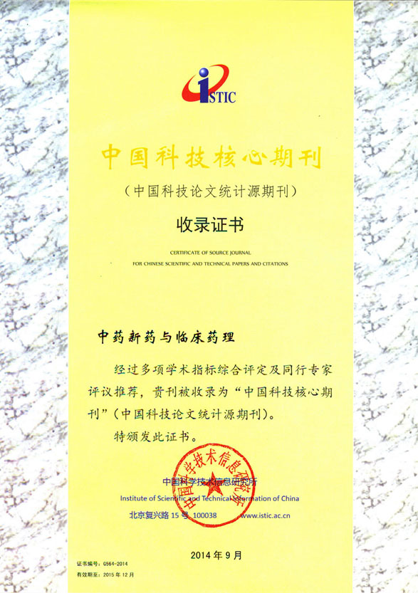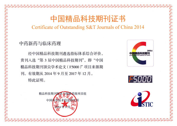 日前,在北京国际会议中心举行2014中国科技论文统计结果发布会上,经国家科学技术部中国科学技术信息研究所中国精品科技期刊遴选指标体系综合评价,beat365官网《中药新药与临床药理》再次被评为"中国精品科技期刊"。国家科技部自2000年以来立项进行中国精品科技期刊战略研究,中国科学技术信息研究所建立了中国精品科技期刊遴选指标体系综合评价系统,自2008年起每3年评选一次中国精品科技期刊。"第3届中国精品科技期刊"评选是经过该综合评价系统科学评价,从入选为中国科技论文与引文数据库(CSTPCD)收录的近2000种科技期刊(中国科技核心期刊)中评选出中国精品科技期刊(中文版)300种和中国国际化精品科技期刊(英文版)15种。中国精品科技期刊是指在某一学科内质量和水平较高、在国内具有较高影响且具有一定发展潜力的科技期刊。