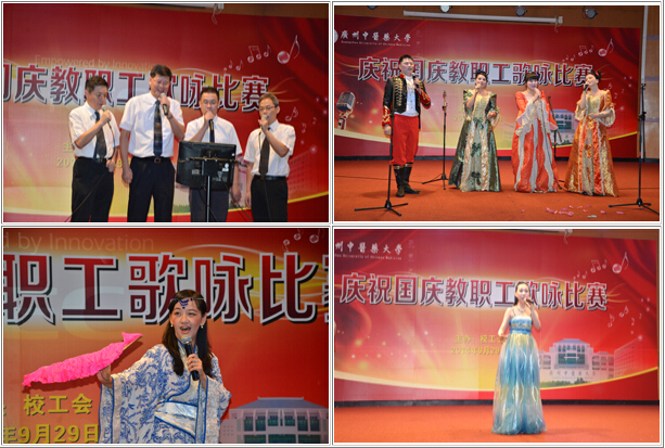 9月29日下午,beat365官网在教工活动中心举行庆祝国庆教职工歌咏比赛。来自16个二级工会的参赛选手及教职工近200余人欢聚一堂,用歌声庆祝建国65周年。