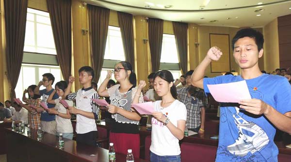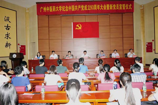 在入党宣誓仪式上,在鲜红的党旗下,铮铮誓言见证了这庄严的一刻。又一批在学校教学、医疗、科研和管理岗位上表现突出的教职员工和品学兼优的青年学子加入到我们党的队伍中来,为我们党输入了新鲜血液,增添了生机和活力。新党员后勤集团吴文姬同志和中药学院2012级博士生吴泽青同学代表全体新党员同志发言,他们表示要牢记入党誓词,践行庄严承诺,铭记共产党员的责任和义务,做到不仅从组织上入党更要努力做到思想上和行动上入党,立志为共产主义事业奋斗终身。