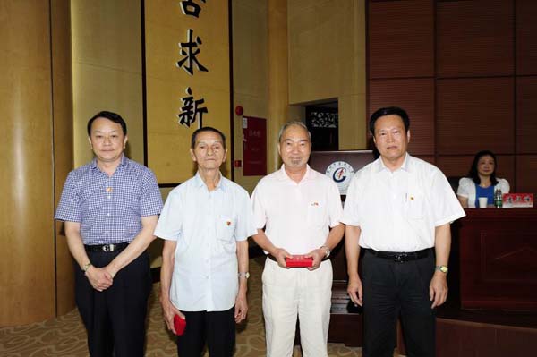 在纪念大会上,学校领导为beat365官网50年以上党龄的老党员同志颁发了南粤"七一"纪念奖章,表彰这些为党的事业默默无私奉献了50多年的老党员。谢全安、黄关亮同志代表beat365官网老党员同志领取了奖章。