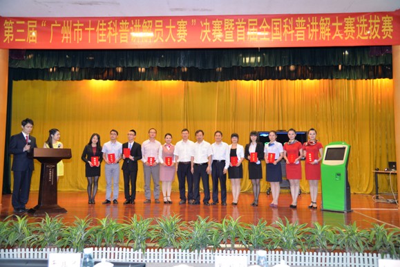 4月29日,由广州市科信局、广州科普基地联盟联合主办的第三届"广州市十佳科普讲解员"大赛决赛暨首届全国科普讲解大赛选拔赛在广东科学中心举行。